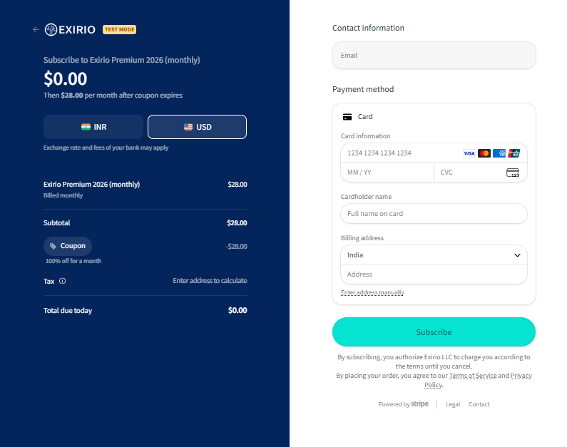 If you upgraded on iOS, you can manage your Exirio subscription in the Settings page of your Apple device - as you already do for all other subscriptions.